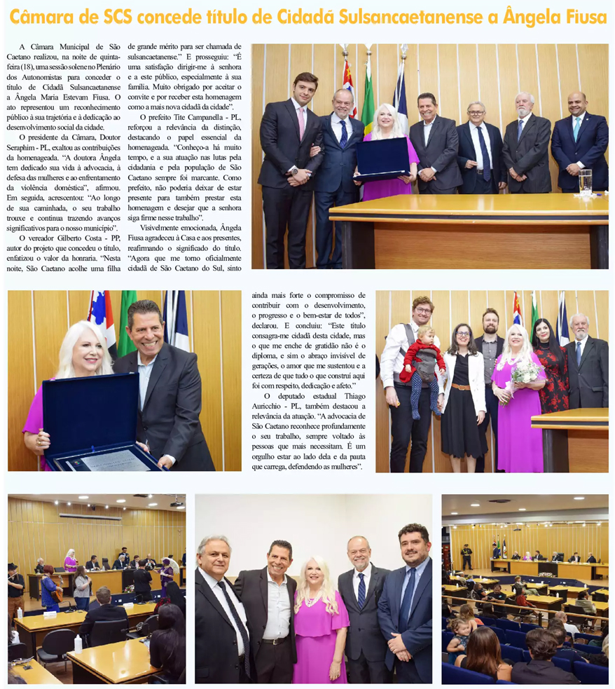 Câmara de SCS concede título de Cidadã Sulsaocaetanense a Ângela Fiuso
