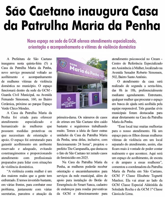 São Caetano inaugura Casa da Patrulha Maria da Penha