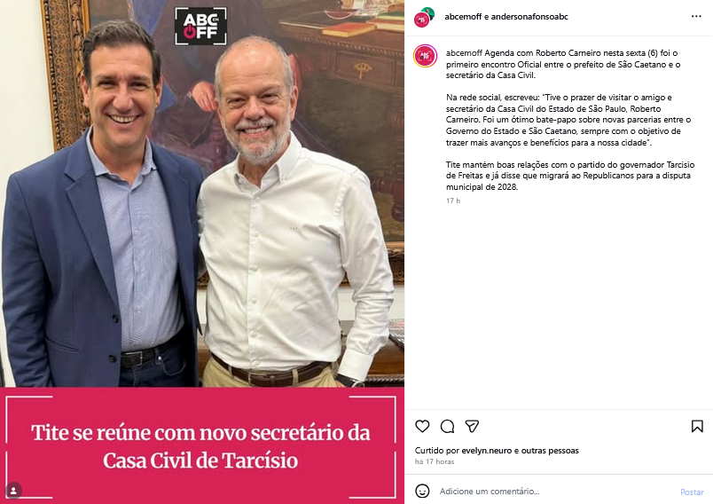 Tite se reúne com novo secretário da Casa Civil de Tarcísio