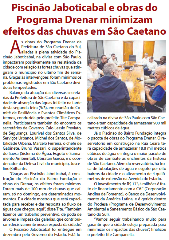 Piscinão Jaboticabal e obras do Programa Drenar minimizam efeitos das chuvas em São Caetano