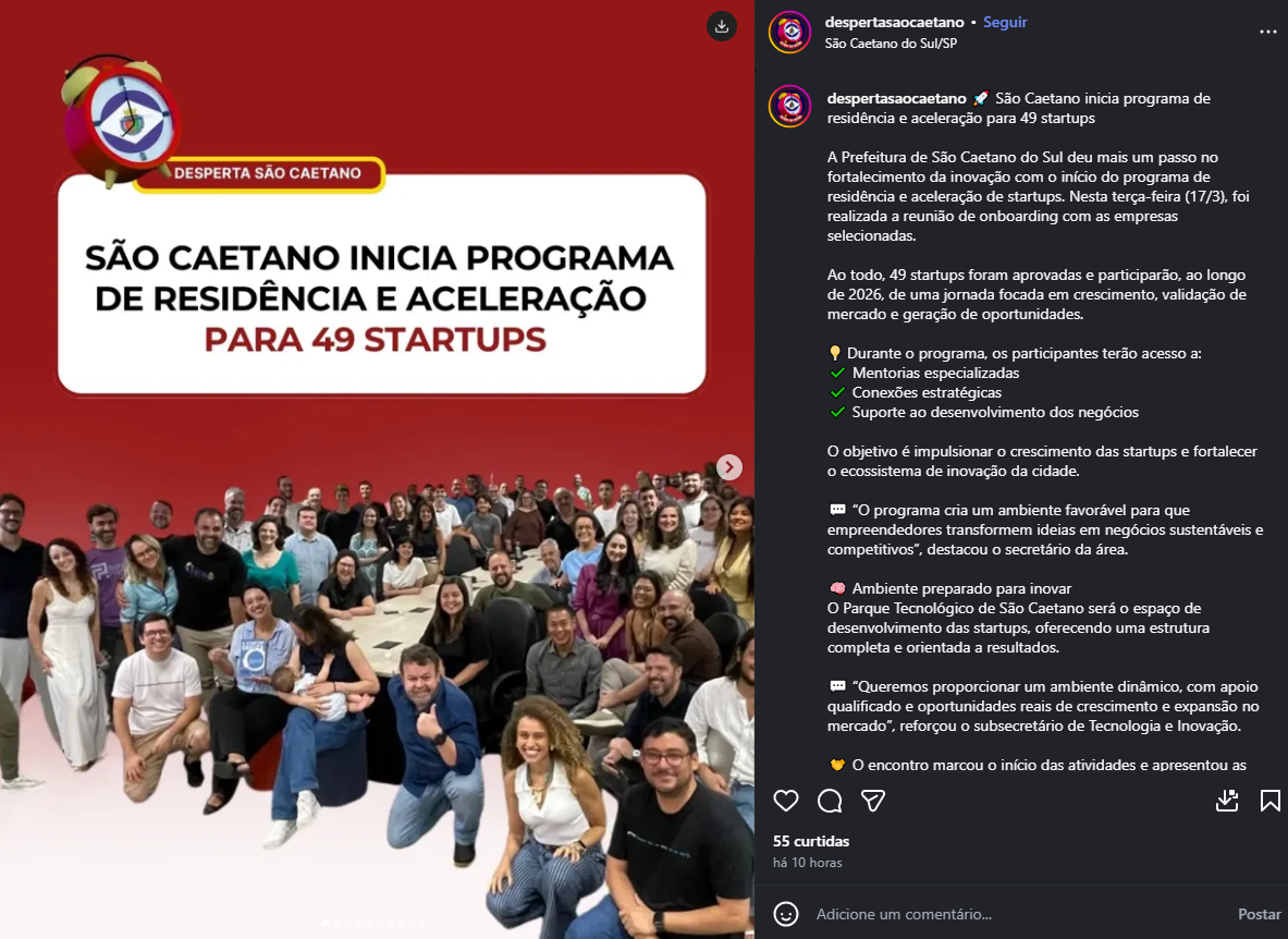 São Caetano inicia programa de residência e aceleração para 49 startups