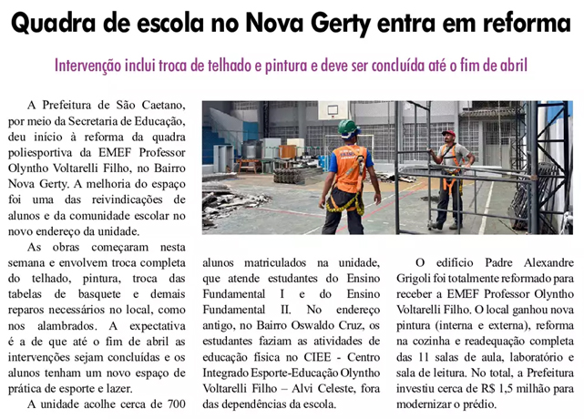 Quadra de escola no Nova Gerty entra em reforma