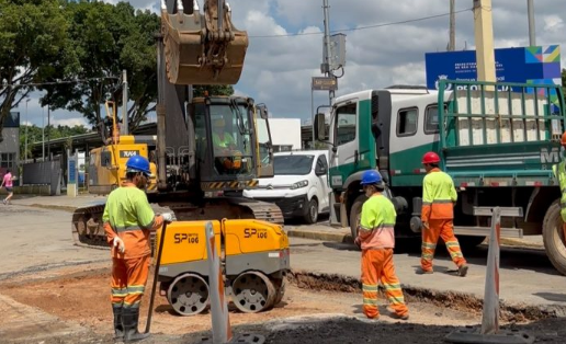 As intervenções do Drenar São Caetano também avançam na Rua 24 Horas, onde as ações integram o projeto de recuperação e melhorias do Terminal Rodoviário Nicolau Delic, além da requalificação da passagem subterrânea.
