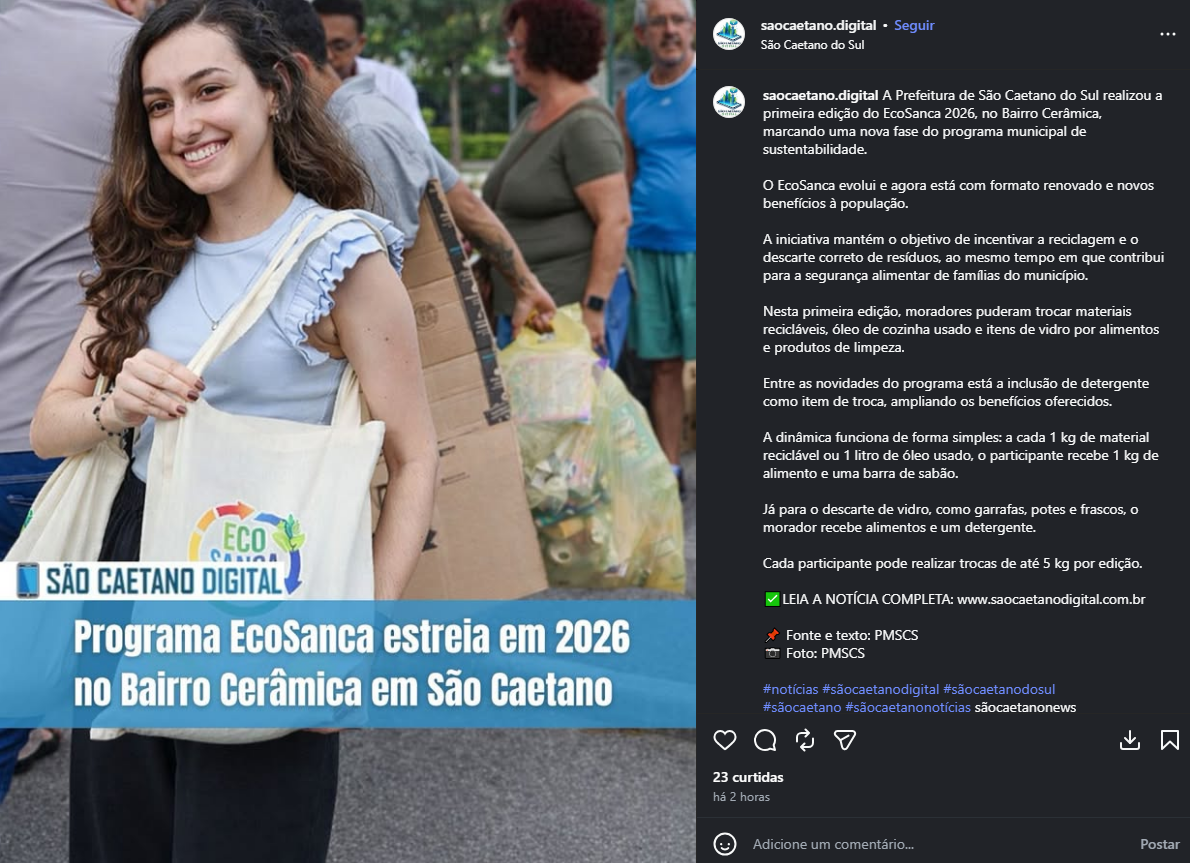 Veículo: Online -> Instagram -> Instagram São Caetano Digital