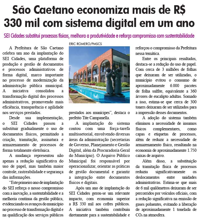 São Caetano economiza mais de R$ 330 mil com sistema digital em um ano