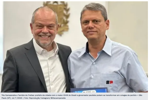 No que depender do governador de São Paulo, Tarcísio de Freitas, o Republicanos passará a administrar mais uma cidade no Estado. Ele quer que o partido filie o prefeito de São Caetano do Sul, Tite Campanella, atualmente sem partido.
