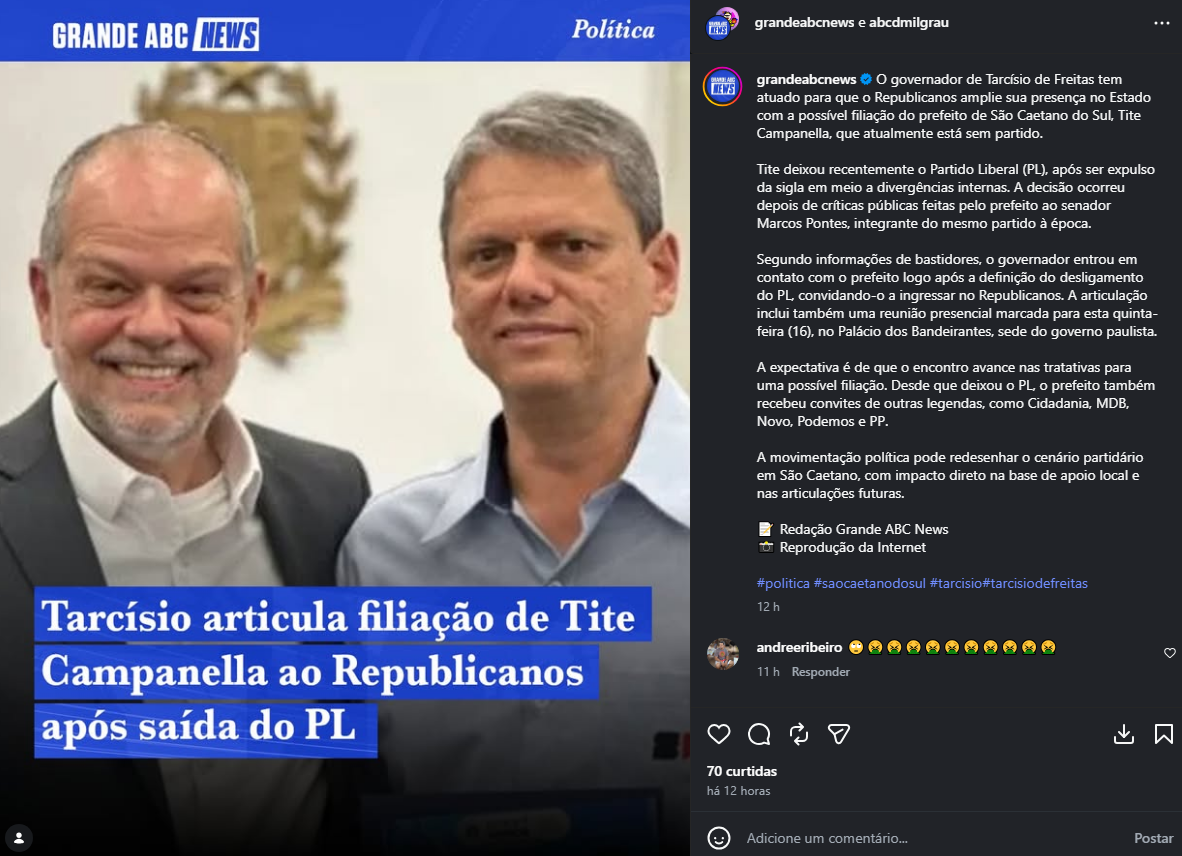 Veículo: Online -> Instagram -> Instagram Grande ABC News