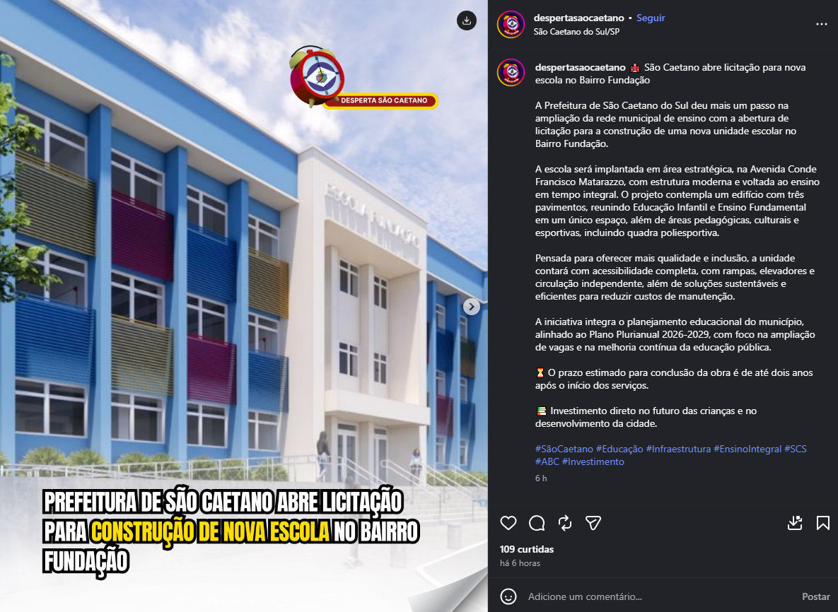 Veículo: Online -> Instagram -> Instagram Desperta São Caetano