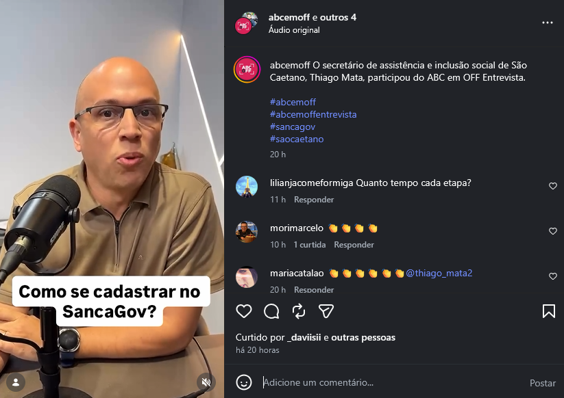 O secretário de assistência e inclusão social de São Caetano, Thiago Mata, participou do ABC em OFF Entrevista