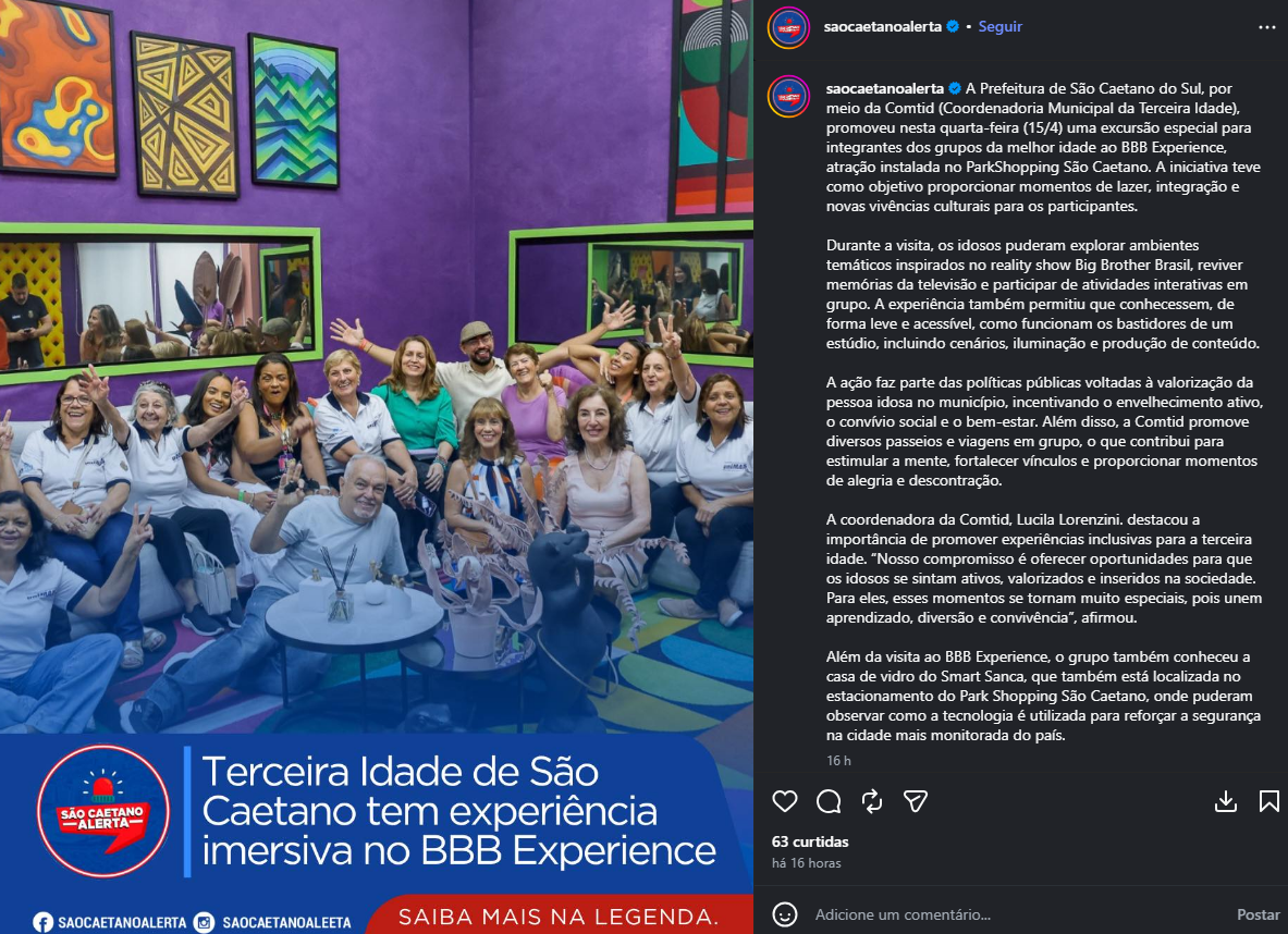 Terceira Idade de São Caetano tem experiência imersiva no BBB Experience