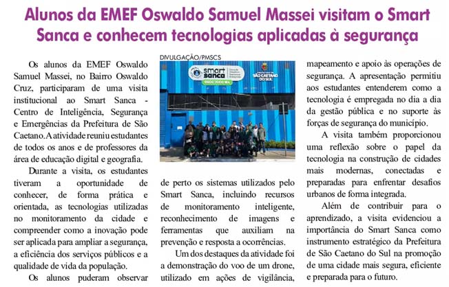 Alunos da EMEF Oswaldo Samuel Massei visitam o Smart Sanca e conhecem tecnologias aplicadas à segurança