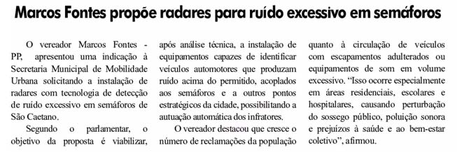 Marco Fontes propõe radares para ruído excessivo em semáforos