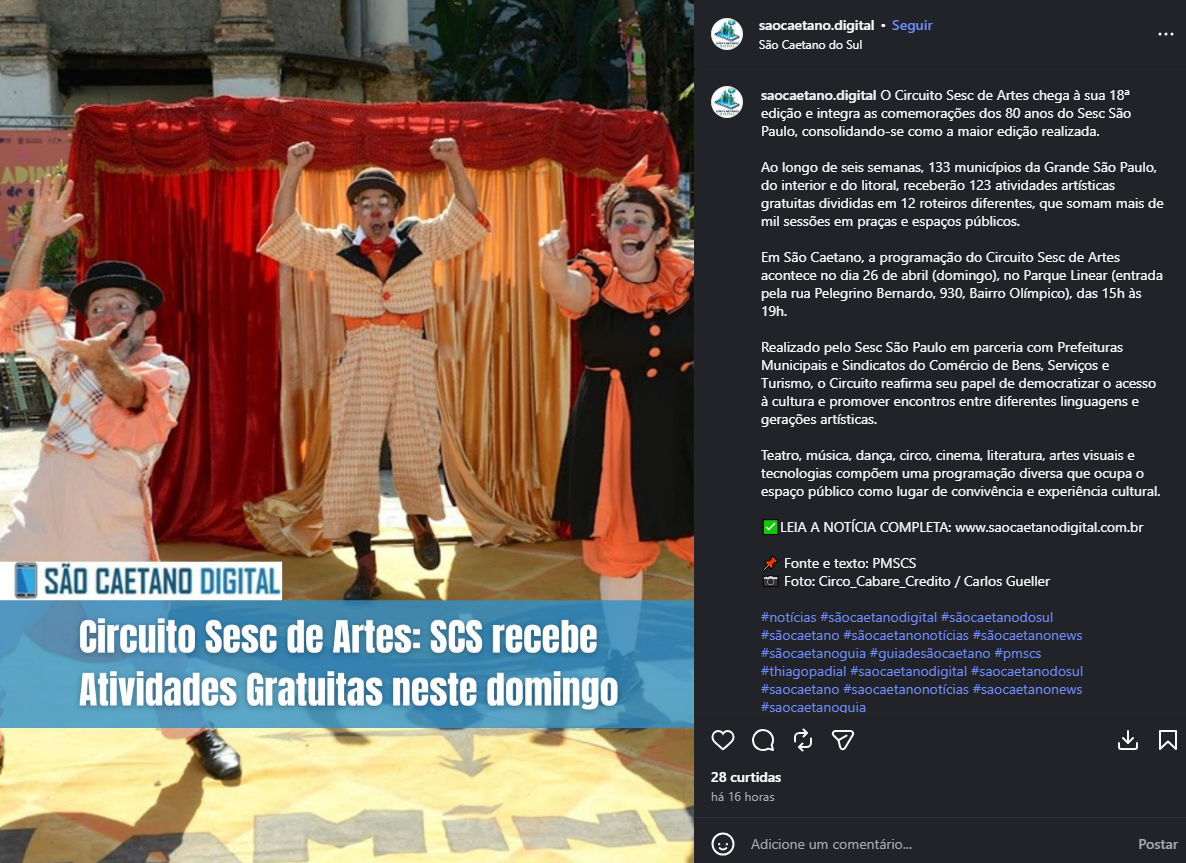 Veículo: Online -> Instagram -> Instagram São Caetano Digital