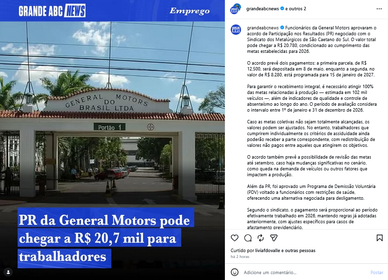 Veículo: Online -> Instagram -> Instagram Grande ABC News