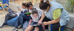 - Rodas de Leitura: Os alunos levam livros físicos para ler com a família em casa.