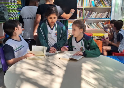 Para combater o distanciamento entre crianças e livros causado pelo excesso de telas, a escola adota estratégias que unem o formato tradicional ao digital:
