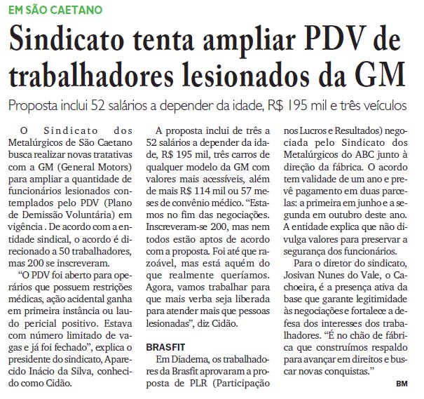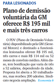 Sindicato tenta ampliar PDV de trabalhadores lesionados da GM