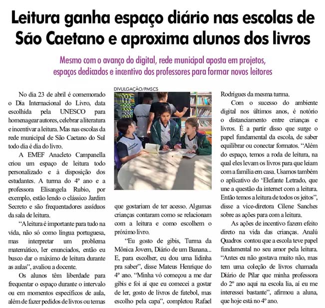 Leitura ganha espaço diário nas escolas de São Caetano e aproxima alunos de livros