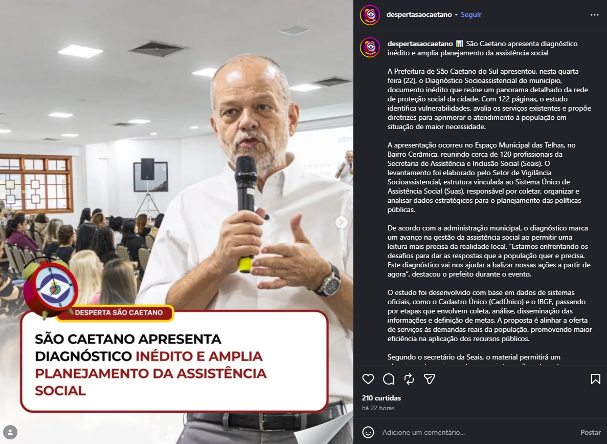 Veículo: Online -> Instagram -> Instagram Desperta São Caetano