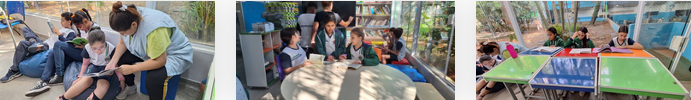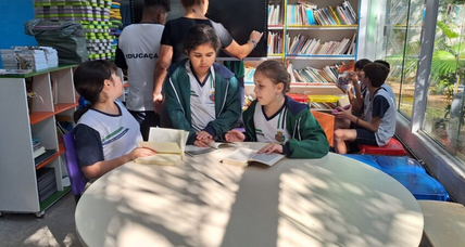 Os alunos têm liberdade para frequentar o espaço durante o intervalo ou em momentos específicos de aula, além de fazer pedidos de livros ou temas que gostariam de ter acesso. Algumas crianças contaram como se relacionam com a leitura e como escolhem o próximo livro.