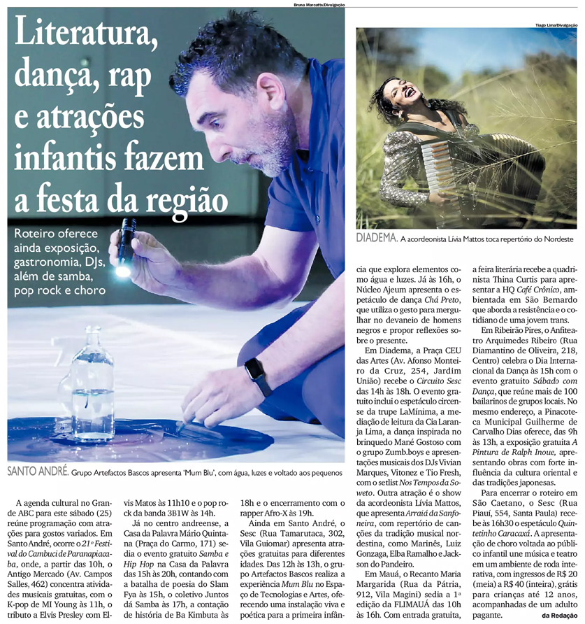 Literatura, dança, rap e atrações infantis fazem a festa da região