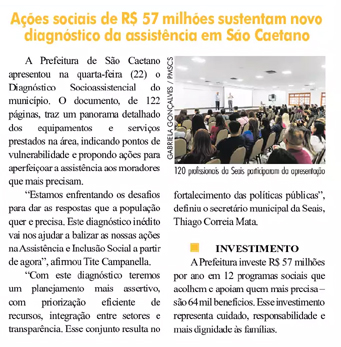 Ações sociais de R$ 57 milhões sustentam novo diagnóstico da assistência em São Caetano