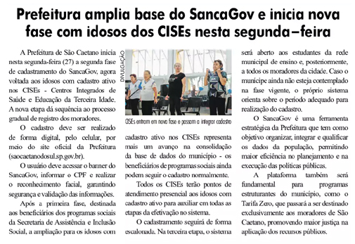 Prefeitura amplia base do SancaGov e inicia nova fase com idosos dos CISEs nesta segunda-feira
