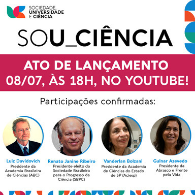 O ato será transmitido no canal do SOU_Ciência no Youtube